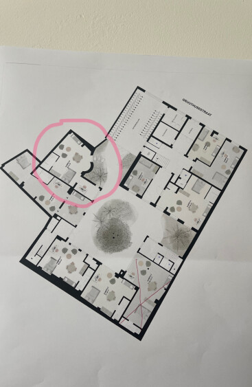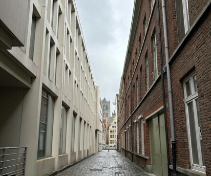 Het gaat om een studio die zich bevind in een recent gerenoveerd pand, gelegen in het historisch centrum van Gent. De afbeeldingen van de studio zijn daarom ook modelfoto’s. Op het plan staat de kamer in kwestie aangeduid. Je beschikt over een eigen badkamer en keuken. De kamer wordt voorzien van een bed, kast en bureau.