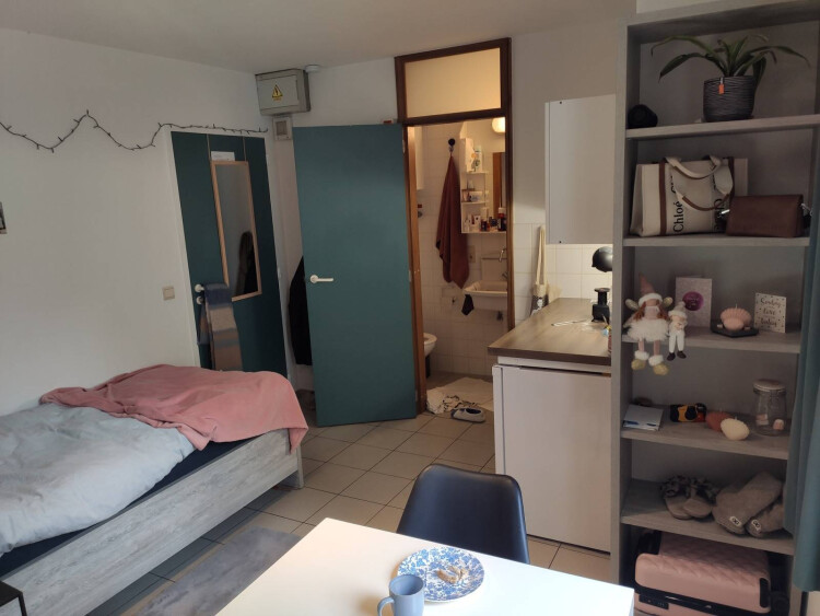 Het betreft een ruime bemeubelde kamer van 15m². De kamer beschikt over een eigen frigo en badkamer met douche en toilet.