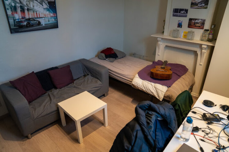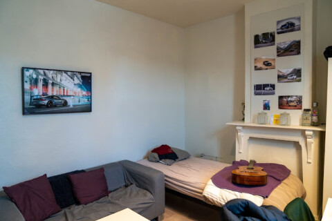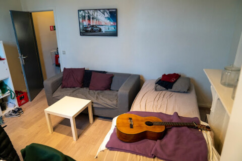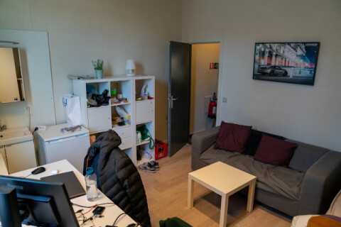 HET BETREFT EEN GROTE KAMER MET VEEL LICHT IN EEN STUDENTENGEBOUW MET 14 KAMERS