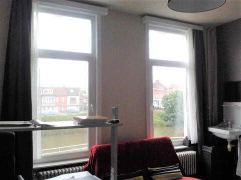 ruime, heldere kamer aan straat zijde van een groot herenhuis, met zicht op het water