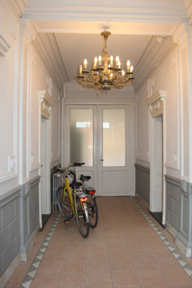 er zijn 6 studentenkoten in het gebouw. 1 gedeelde badkamer, 2 toiletten, 1 gemeenschappelijke keuken