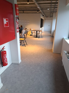 Gemeenschappelijke ruimte met keuken (microgolf, 5 frigos, 2 diepvriezen, kookplaat en oven), eettafels en speelruimte (pingpongtafel, darts en kicker)