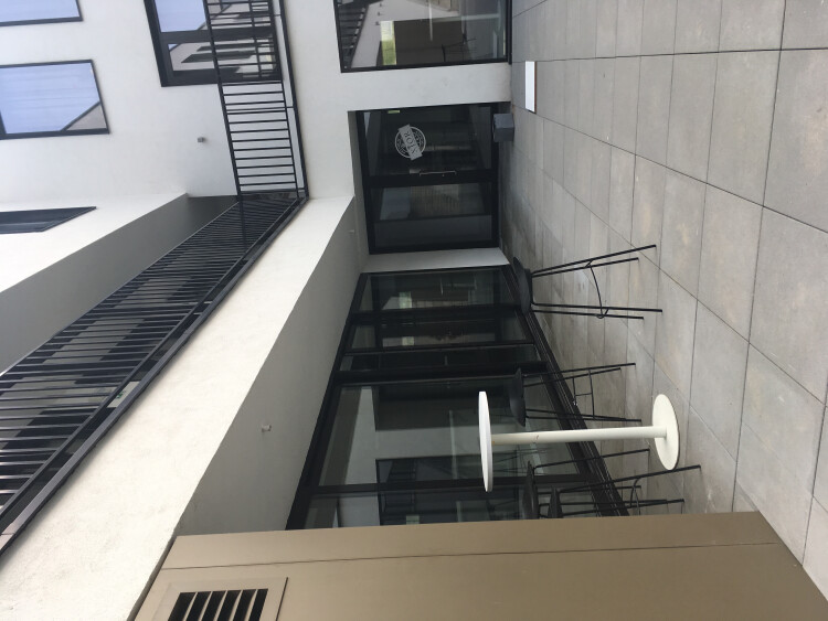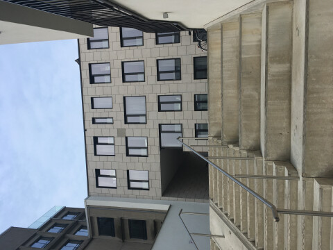 Lavabo, douche, toilet, keuken gemeenschappelijk. Alles zeer netjes onderhouden. Er komt wekelijks een onderhoudshulp langs om de delen te kuisen. Zeer modern gebouw met grote gemeenschappelijke ruimte.