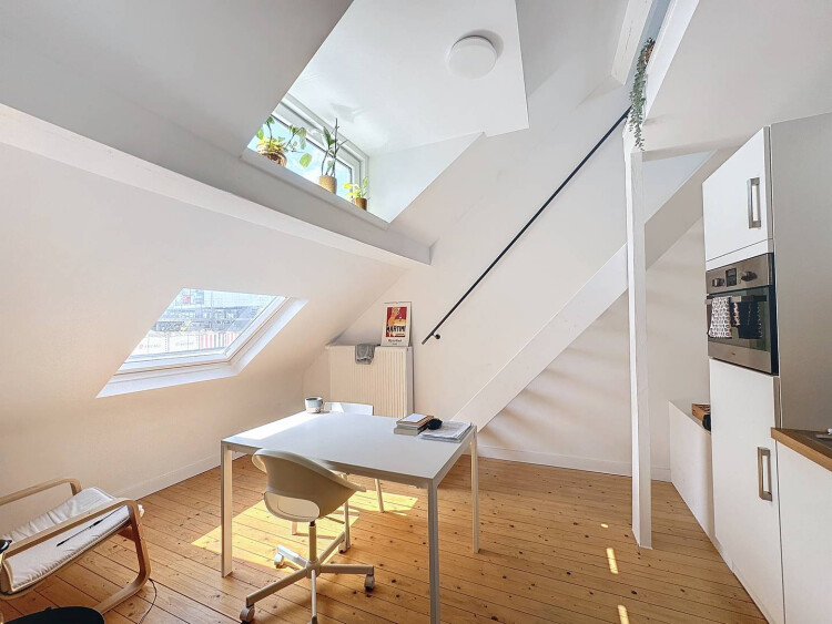 Dit pas gerenoveerd gebouw (2022) bestaat uit 6 statige studentenkamers. Het pand bevindt zich op wandelafstand van Gent-Sint Pieters station en het Citadelpark. Deze kamer bevindt zich op de derde verdieping van het gebouw. Door zijn oppervlakte en toegevoegde mezzanine is deze kamer ideaal om te huren als studerend koppel of twee vrienden.