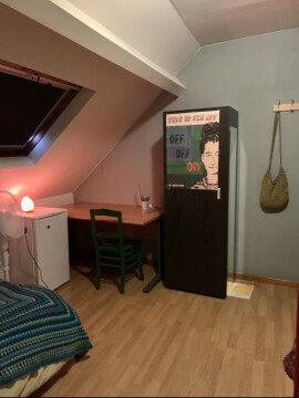 De kamer heeft een eigen lavabo en frigo, keuken en badkamer zijn gedeeld met 5 andere leuke huisgenoten :))