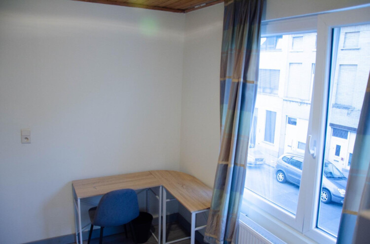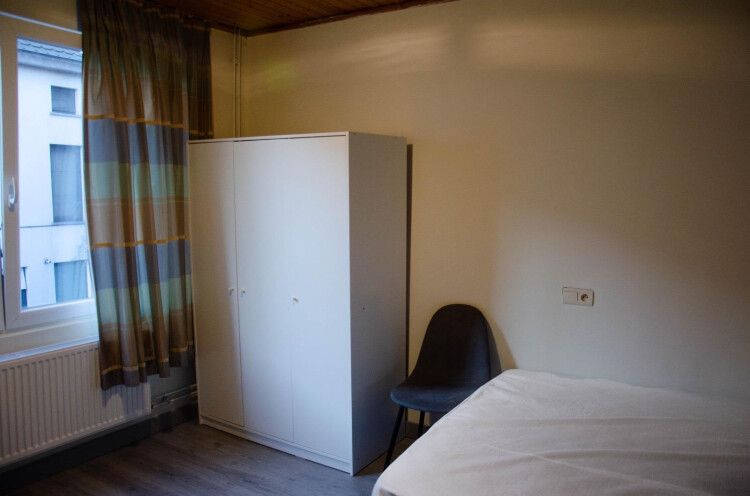The room is furnished. (double bed, wardrobe, nigstand, lamp, desk, curtains, pillows)